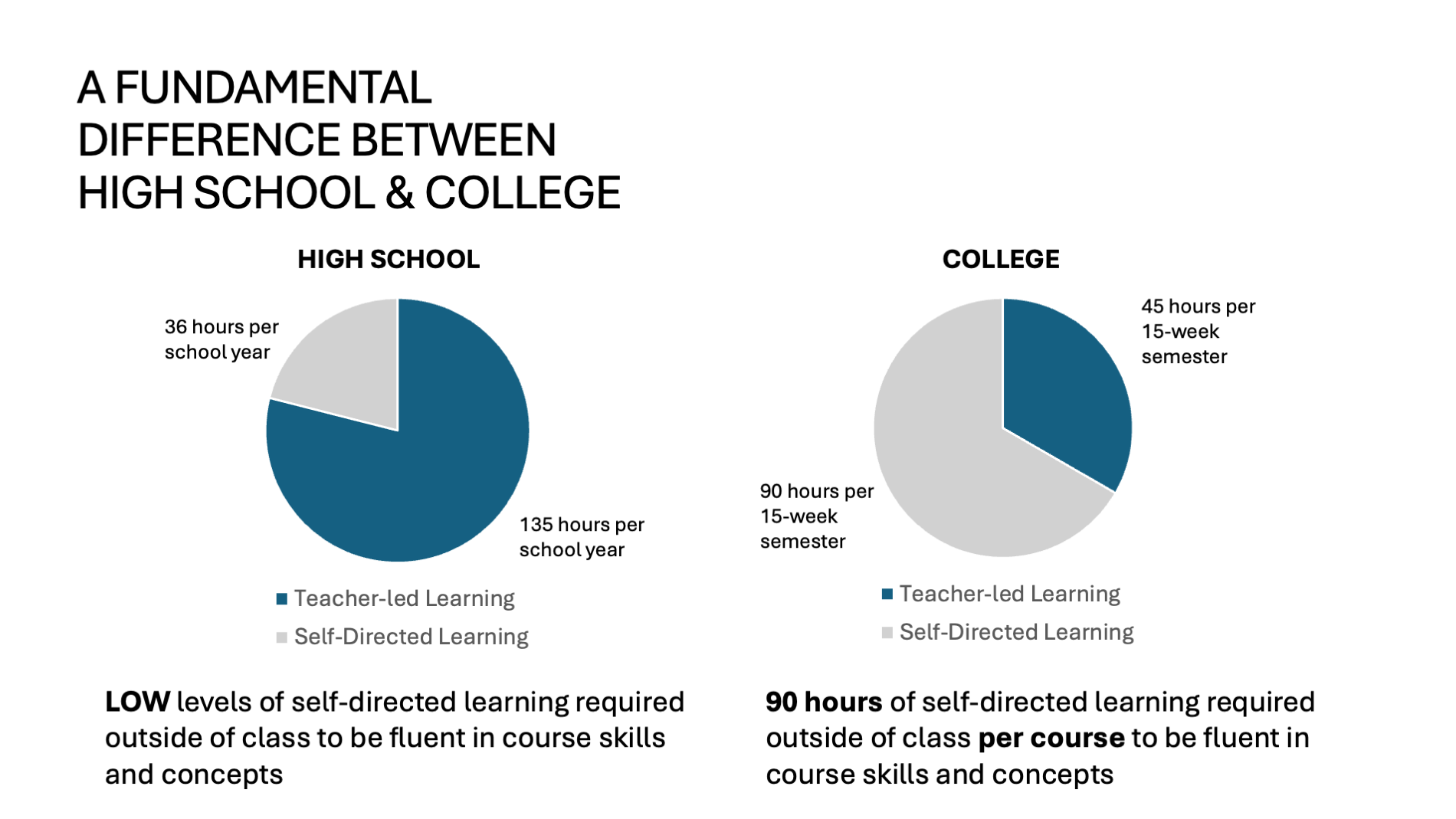 Most new college students use inefficient and ineffective study techniques to learn new information or skills and may be unaware of more effective study strategies. Worse, they frequently overestimate the effectiveness of the study strategies they use and underestimate the time and effort it takes to learn something with the result that they often underlearn the material and can’t retrieve or use it effectively in performance situations.