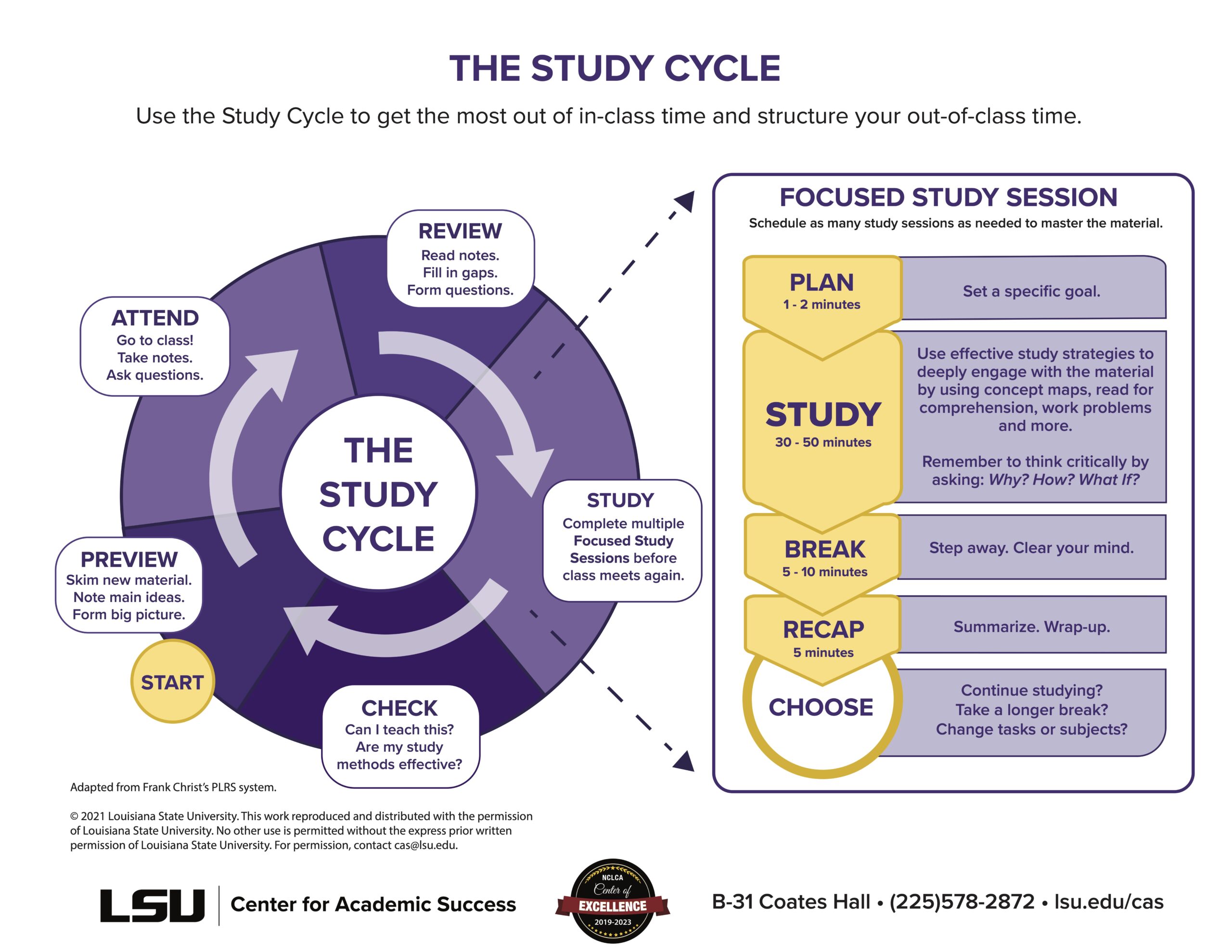 - Used the Study Cycle with Intense Study Sessions